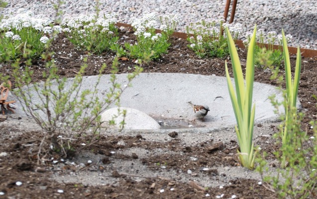 Fyll ett fat med vatten och lägg i några stenar som sticker upp över ytan. Se till att det alltid är fyllt med vatten under sommaren. Det kommer garanterat besökas av olika fågelarter som kan behöva hjälp med att hitta vatten när det är varmt ute. Om du placerar det på kanske 5 meters håll från där du brukar sitta i trädgården så kommer du kunna titta på fåglarna utan att de blir så rädda för dig. Känner du igen vilka fågelarter som besöker badet?